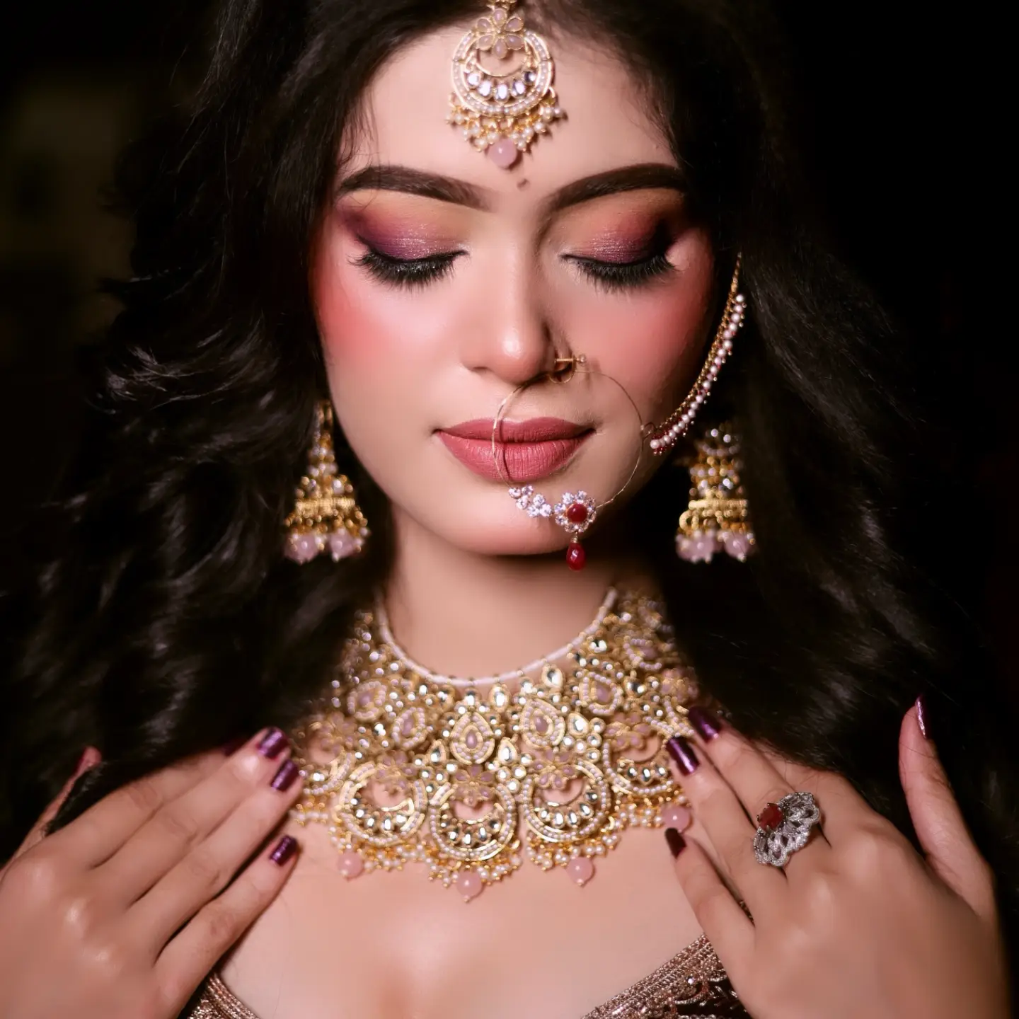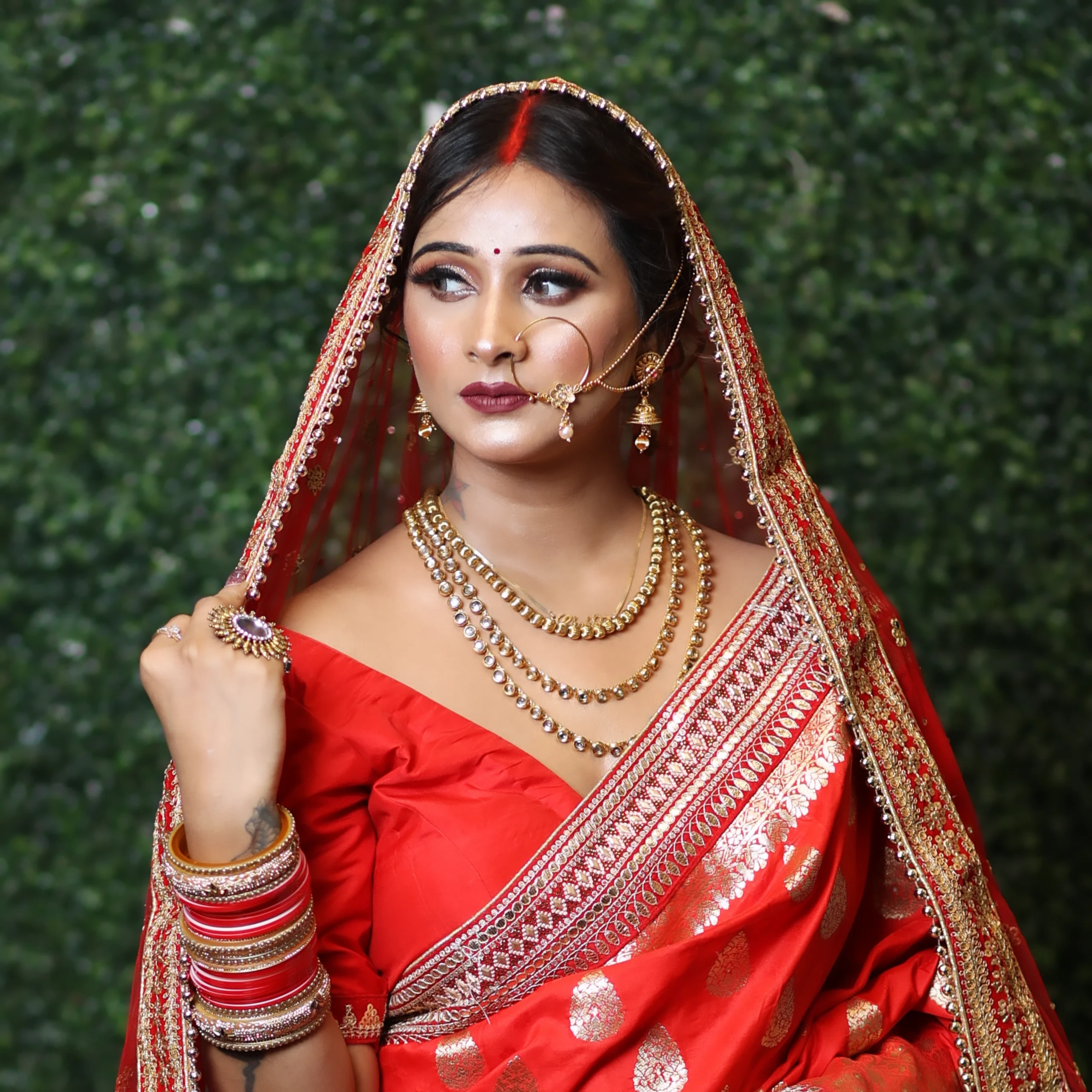 Radiate elegance on your special day with flawless bridal makeup tailored to highlight your natural beauty and complement your style.